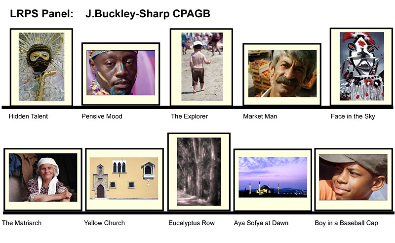 Judy gained her LRPS in 2002. LRPS requires a panel of 10 prints, usually laid out in two rows of five. Together the panel has to demonstrate basic photographic competence. Judy’s panel reflects her interest in people photography.